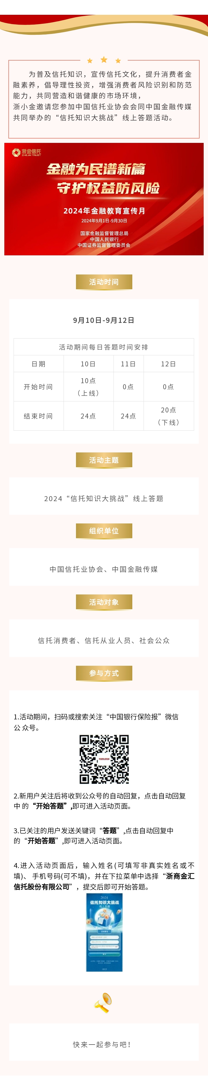 消保活動 | 浙小金誠邀您參加“信托知識大挑戰(zhàn)”線上答題活動