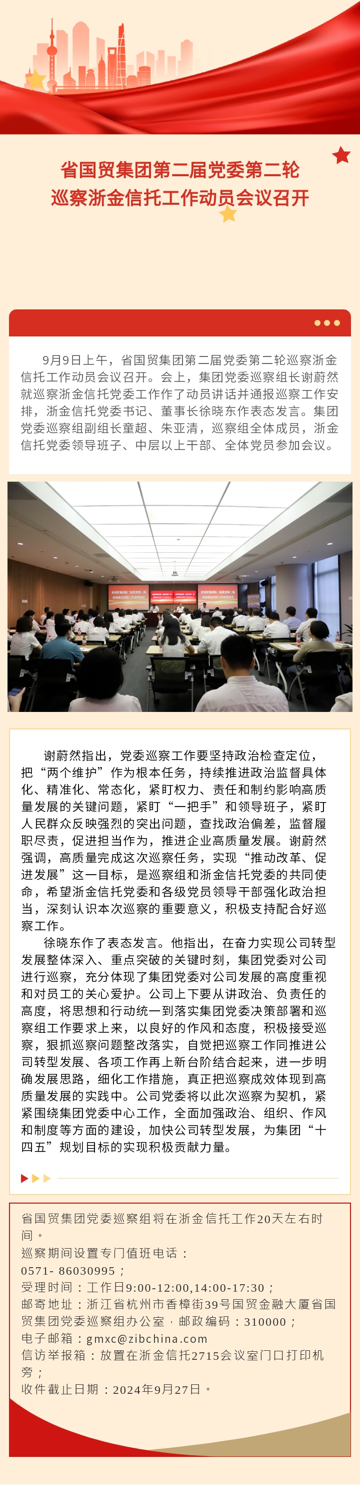 省國貿集團第二屆黨委第二輪巡察浙金信托工作動員會議召開