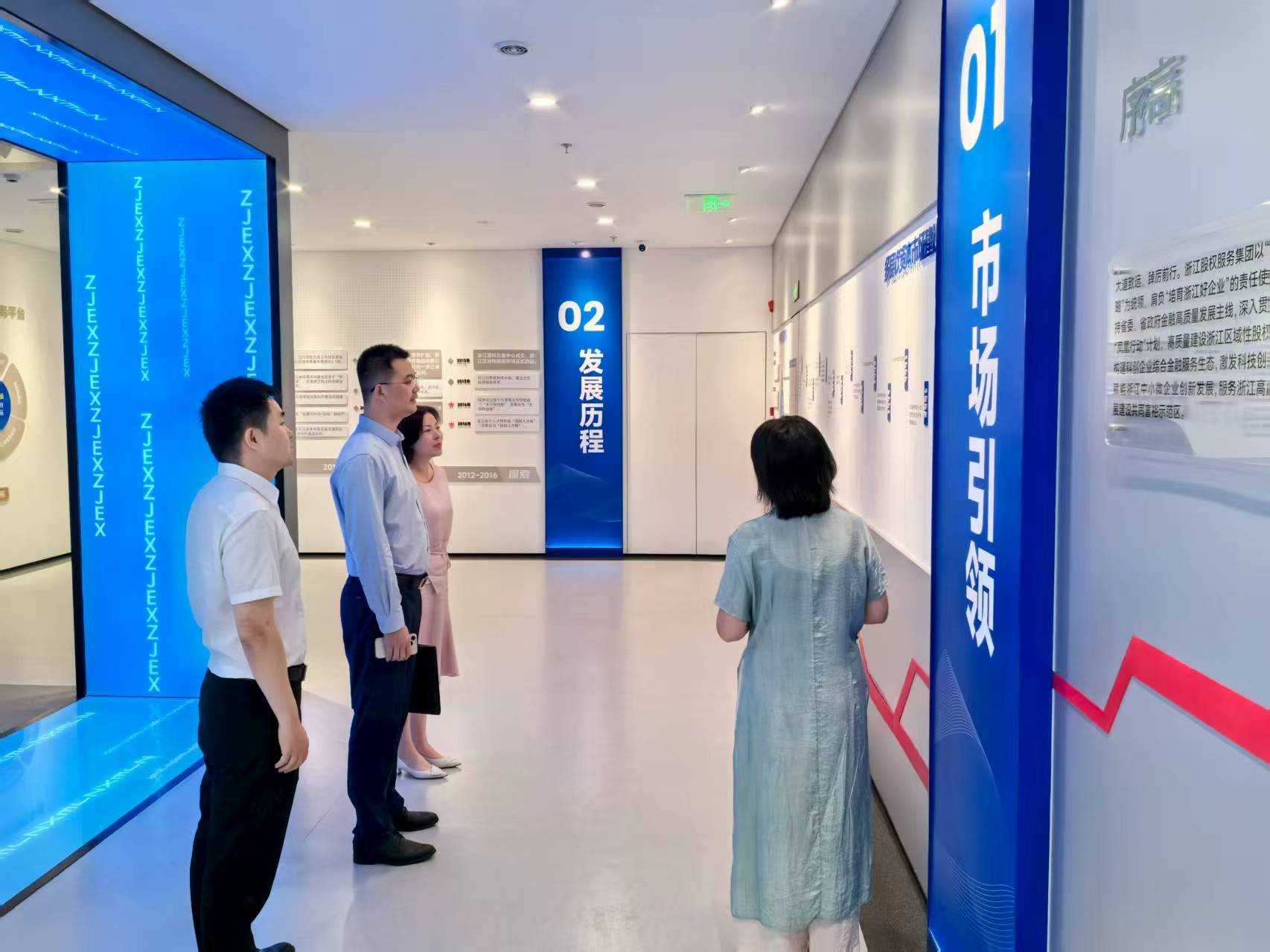 9月1日上午,公司總經理、董事林俊民帶隊赴浙江股權服務集團(以下簡稱“浙股集團”)拜訪交流。浙股集團董事長蔣瀟華、副總裁王琳琍攜相關部門負責人熱情接待。公司一行參觀了浙江區域性股權市場科創金融展示中心,詳細了解浙江區域性股權市場建設發展情況和服務成果。